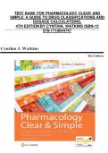 This document contains a comprehensive test bank for Pharmacology Clear and Simple: A Guide to Drug Classifications and Dosage Calculations. It includes practice questions and answers covering key pharmacology concepts, drug classifications, medication calculations, and safe dosage administration. The material is useful for nursing and healthcare students preparing for pharmacology exams or reviewing core medication calculation skills.