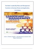"Comprehensive Test Bank for Leadership Roles and Management Functions in Nursing: Theory and Application (11th Ed.) by Carol J. Huston This instructor-ready resource contains 375 rigorously developed questions across all 25 chapters, featuring: Evidence-Based Rationales: 3-5 line explanations linking theory to practice with citations from the 11th edition. Contemporary Emphasis: Questions integrate telehealth, AI ethics, generational workforce dynamics, and health equity (2023 CDC...