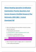 Illinois Reading Specialist Certification Examination Practice Questions & Correct Answers