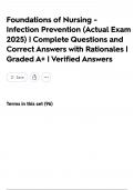 Foundations of Nursing - Infection Prevention (Actual Exam 2025) | Complete Questions and Correct Answers with Rationales | Graded A+ | Verified Answers