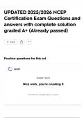 UPDATED 2025/2026 NCEP Certification Exam Questions and answers with complete solution graded A+ (Already passed)