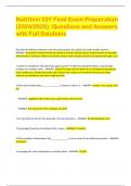 Nutrition 331 Final Exam Preparation (2024/2025): Questions and Answers with Full Solutions