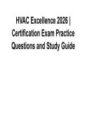 HVAC Excellence 2026 Certification Exam Practice Questions and Study Guide 2025/ 2026 Comprehensive HVACR Test Bank with Solutions