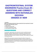 - GASTROINTESTINAL SYSTEM DISORDERS Practice Exam #4 - QUESTIONS AND CORRECT ANSWERS WITH RATIONALES 2023/2024 GRADED A+ NEW • Exam (elaborations)
