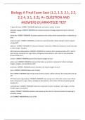Biology A Final Exam Sect (1.2, 1.3, 2.1, 2.2, 2.2.4, 3.1, 3.2), A+ QUESTION AND ANSWERS GUARANTEED TEST
