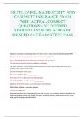 SOUTH CAROLINA PROPERTY AND CASUALTY INSURANCE EXAM WITH ACTUAL CORRECT QUESTIONS AND DEFINED VERIFIED ANSWERS ALREADY GRADED A+ GUARANTEED PASS