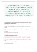 PENN FOSTER VETERINARY PHARMACOLOGY FINAL EXAM WITH ACTUAL CORRECT QUESTIONS AND DEFINED VERIFIED ANSWERS ALREADY GRADED A+ GUARANTEED PASS