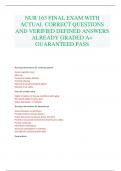 NUR 163 FINAL EXAM WITH ACTUAL CORRECT QUESTIONS AND VERIFIED DEFINED ANSWERS ALREADY GRADED A+ GUARANTEED PASS