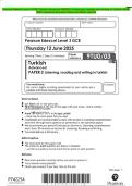 - Pearson Edexcel Level 3 GCE Turkish Advanced PAPER 3: Listening, reading and writing in Turkish JUNE 2025 combined Question Paper and Mark scheme • Exam (elaborations)