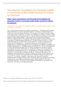 Test Bank for Foundations for Population Health in Community Public Health Nursing5th Edition by StanhopePart I: Perspectives in Health Care Delivery and Nursing 1. Community and Prevention Oriented Practice to Improve Population Health 2. The History of Public Health and Public and Community Health Nursing 3. The Changing U.S. Health and Public Health Care SystemsPart II: Influences on Health Care Delivery and Nursing 4. Ethics in Publicand Community Health Nursing Practice 5. Cultural Influenc...