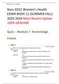 NURS 6551 WOMEN HEALTH EXAM WEEK 11 2023-2024 (Summer-Fall) Recent Update A+ Success