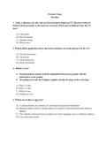 This is a practice exam I made myself based on all the literature, lecture slides, and homework assignments. It includes a total of 60 realistic multiple-choice questions; a good way to test your knowledge and preparation! The answers are completely at the bottom. Good luck!