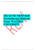 2023 JUNE NRNP 6645 PsychotherapyMidterm Exam WALDEN UNIVERSITY