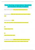 Texas Nursing Jurisprudence Questions and Answers Already Graded A