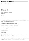 Ellakiwale On this page, you find all documents, package deals, and flashcards offered by seller ellakiwale. 121 Documents 0 Flashcards 0 Package deal Community 8 Followers 0 Following 3 Reviews received 2 0 0 0 1 2 year ago • angelascaife Chapter 06: Care of the Patient with a Gallbladder, Liver, Biliary Tract, or Exocrine Pancreatic Disorder 3 year ago • prettyone1 Chapter 46. Nursing Care of Patients With Musculoskeletal and Connective Tissue Disorders 3 year ago • Bek Foundations Of Nursing 6th Edition by Barbara Lauritsen Christensen – Test Bank 121 items Everything Documents Flashcards Package deal Best sold Newest Rating Chapter 08: Care of Patients with Cancer (0) $7.99 0x sold MULTIPLE CHOICE
