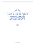 This essay/assignment covers Unit 9 - IT project management assignment 2, with all criterias met to achieve the highest grade (Distinction) along with correct structure. Just follow the content step by step to save time and also to reduce complexity. Harvard Referencing Included*. Note: This will support those in achieving distinction in an effortless way where possible. Best of Luck!