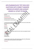 - HESI PHARMACOLOGY TEST 2024-2025 QUESTIONS WITH CORRECT ANSWERS VERIFIED BY EXPERTS AND ALREADY GRADED A+ STUDY TO PASS!!! • Exam (elaborations)