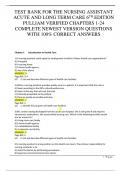 TEST BANK FOR THE NURSING ASSISTANT ACUTE AND LONG TERM CARE 6TH EDITION PULLIAM VERIFIED CHAPTERS 1-24 COMPLETE NEWEST VERSION QUESTIONS WITH 100% CORRECT ANSWERS