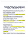 TEST BANK INTRODUCTION TO GESTATION 9TH EDITION LEIFER EXAM WITH CORRECT DETAILED ANSWERS 2023-2024