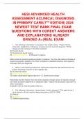 HESI ADVANCED HEALTH ASSESSMENT &CLINICAL DIAGNOSIS IN PRIMARY CARE(7TH EDITION) 2024 NEWEST TEST BANK FINAL EXAM QUESTIONS WITH CORECT ANSWERS AND EXPLANATIONS ALREADY GRADED A+|REAL EXAM