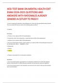 - HESI TEST BANK ON MENTAL HEALTH EXIT EXAM 2024-2025 QUESTIONS AND ANSWERS WITH RATIONALES ALREADY GRADED A+STUDY TO PASS!!! • Tentamen (uitwerkingen)