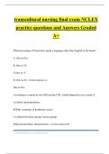transcultural nursing final exam NCLEX practice questions and Answers Graded A+