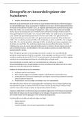In deze samenvatting worden alle onderwerpen benoemd die langskomen in de dikke cursus van etnografie en beoordelingsleer der huisdieren uitgezonderd van alle rassen (die komen terug in losse documenten). Alle kenmerken per diersoort en het stukje domesticatie en selectie zitten erbij ingenomen.