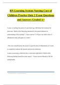 RN Learning System Nursing Care of Children Practice Quiz 2 Exam Questions and Answers Graded A+