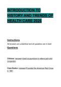 This document covers key concepts, historical figures, and major developments in the history and trends of health care, from ancient civilizations to modern technological advancements. It includes clearly answered questions on medical pioneers, public health systems, diseases, health care delivery models, and future directions in health care, making it a complete study guide for exams and coursework.