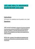 This document provides a complete life and health insurance exam review for the 2025–2026 testing period, covering key insurance terms, policy provisions, riders, annuities, retirement plans, underwriting concepts, and state and federal regulations. It includes clearly defined questions and underlined answers designed for efficient memorization and exam preparation. The material is suitable for pre-licensing students and candidates preparing for state life and health insurance licensing exams.
