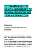 PSYCHIATRIC MENTAL HEALTH NURSING NCLEX REVIEW QUESTIONS SET 1 EXAM VERIFIED Q&A