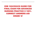 E9B 1624392439 GUIDE FOR FINAL EXAM FOR ADVANCED NURSING PRACTICE II 100% CORRECT ANSWERS AID GRADE ‘A’