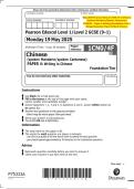 - May 2025 Pearson Edexcel: GCSE (9–1) Chinese (Spoken Mandarin/Spoken Cantonese) 1CN0/4F – Paper 4 Writing (Foundation Tier) – Merged Question Paper & Mark Scheme. • Exam (elaborations)