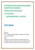 Master nursing leadership and management with this comprehensive, exam-focused Test Bank for Leadership Roles and Management Functions in Nursing: Theory and Application, 11th Edition by Carol J. Huston. Designed for today’s nursing students and emerging nurse leaders, this digital resource delivers full textbook coverage across ALL units and chapters, with 50 high-qualit...