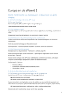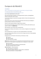 Een samenvatting van de les en het handboek van Europa en de Wereld. Wel aangeraden om de slides van Mevrouw Smets erbij te nemen.