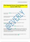 Wise financial Literacy Exam Questions And Answers 100% Pass