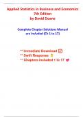 Solutions for Applied Statistics in Business and Economics, 7th Edition Doane (Chapters 1 to 17 included)