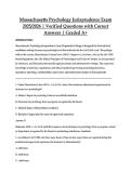 This document provides comprehensive questions for the Massachusetts Psychology Jurisprudence Exam, with clear, law-based answers aligned with current state regulations. It covers licensure requirements, ethical standards, scope of practice, supervision rules, confidentiality, mandated reporting, disciplinary procedures, and Massachusetts laws governing psychological practice.