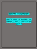 Test Bank for Cost Accounting A Managerial Emphasis Canadian 7th Edition by Horngren