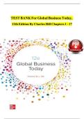 This document contains the full test bank for the eighth edition of Global Business Today by Hill. It includes multiple-choice questions, true/false items, and other exam-style practice materials covering all major chapters on international business, global markets, trade theory, foreign direct investment, and international strategy. The test bank is designed to support exam preparation and reinforce key theories and applications in global business.