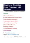 - Movement Education Exam Questions with Answers. • Exam (elaborations)