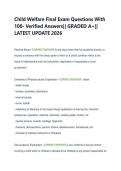 Child Welfare Final Exam Questions With 100- Verified Answers|| GRADED A+|| LATEST UPDATE 2026
