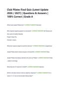 Club Pilates Final Exam (Latest Update 2026 / 2027) | Questions & Answers | Grade A | 100% Verified