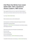 Club Pilates Final Written Exam (Latest Update 2026 / 2027) | Questions & Answers | Grade A | 100% Correct