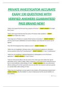 PRIVATE INVESTIGATOR ACCURATE EXAM 130 QUESTIONS WITH VERIFIED ANSWERS GUARANTEED PASS BRAND NEW!