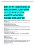 NGN ATI RN NURSING CARE OF CHILDREN PROCTORED EXAM 2019 (QUESTIONS WITH CORRECT ANSWERS A+ GRADED 100% VERIFIED)