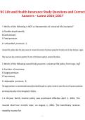 This document provides up-to-date study questions with verified correct answers for the North Carolina Life and Health Insurance State Exam. It covers both life and health insurance topics, including state laws and regulations, policy provisions, underwriting basics, ethics, consumer protections, health plans, and benefits, aligned with the latest 2026/2027 exam requirements.