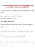 This document provides comprehensive practice exam questions with fully verified correct answers for the North Carolina Health Insurance licensing exam. It covers key topics such as state health insurance regulations, policy provisions, underwriting basics, plan types, ethics, consumer protections, and compliance standards, aligned with the 2026/2027 exam requirements.