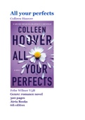 Mijn Engels boekverslag over All your perfects van Colleen Hoover uit vwo 4. Er wordt behandeld: Motivation, Characters, Themes, Plot summary, Alternative ending en Recommendation.