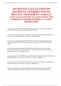 ATI DOSAGE CALCULATION RN MATERNAL NEWBORN ONLINE PRACICE ASSESSMENT COMPLETE ACTUAL EXAM WITH ALL QUESTIONS AND VERIFIED ANSWERS GRADED A+ LATEST VERSION 2024
